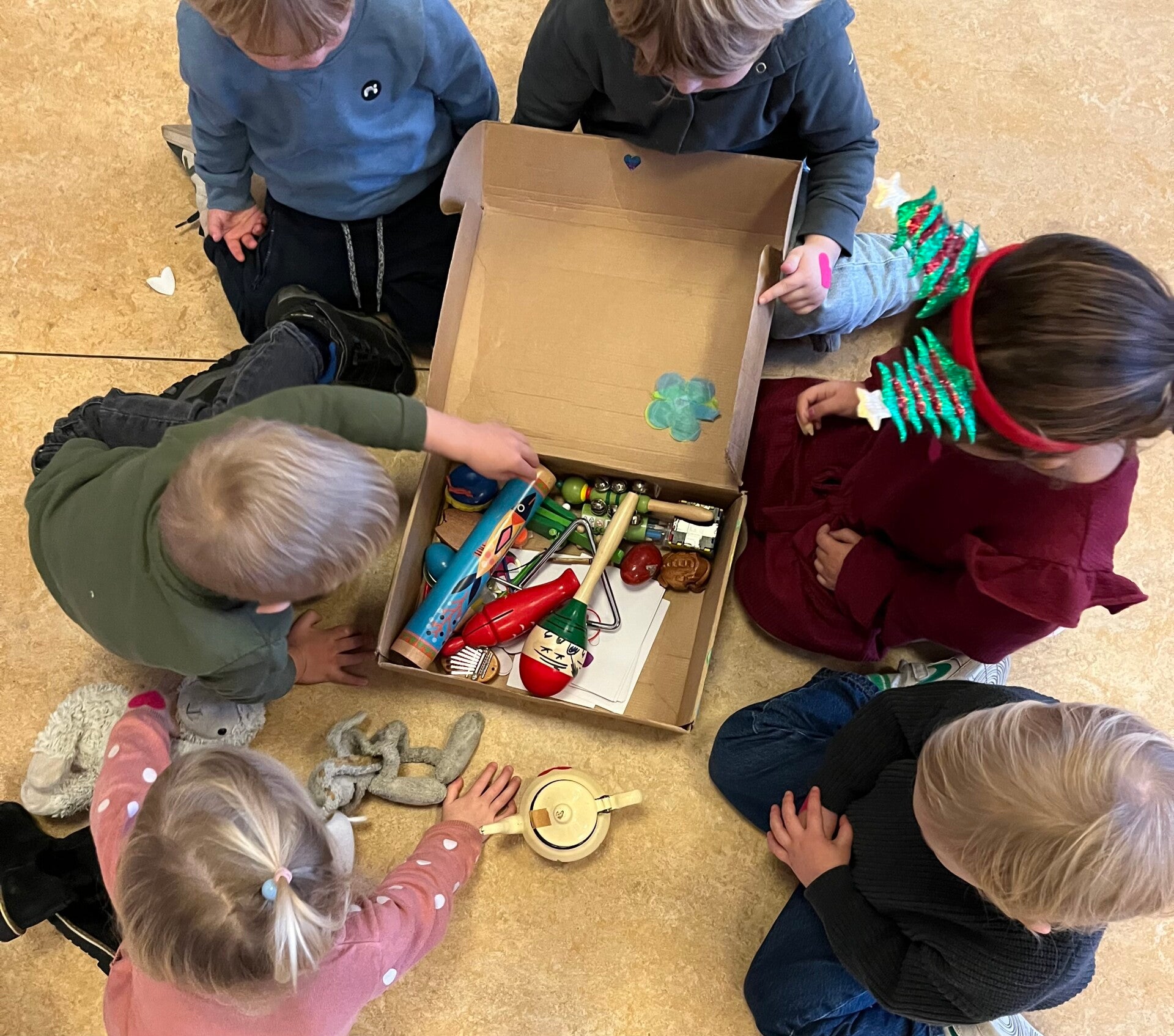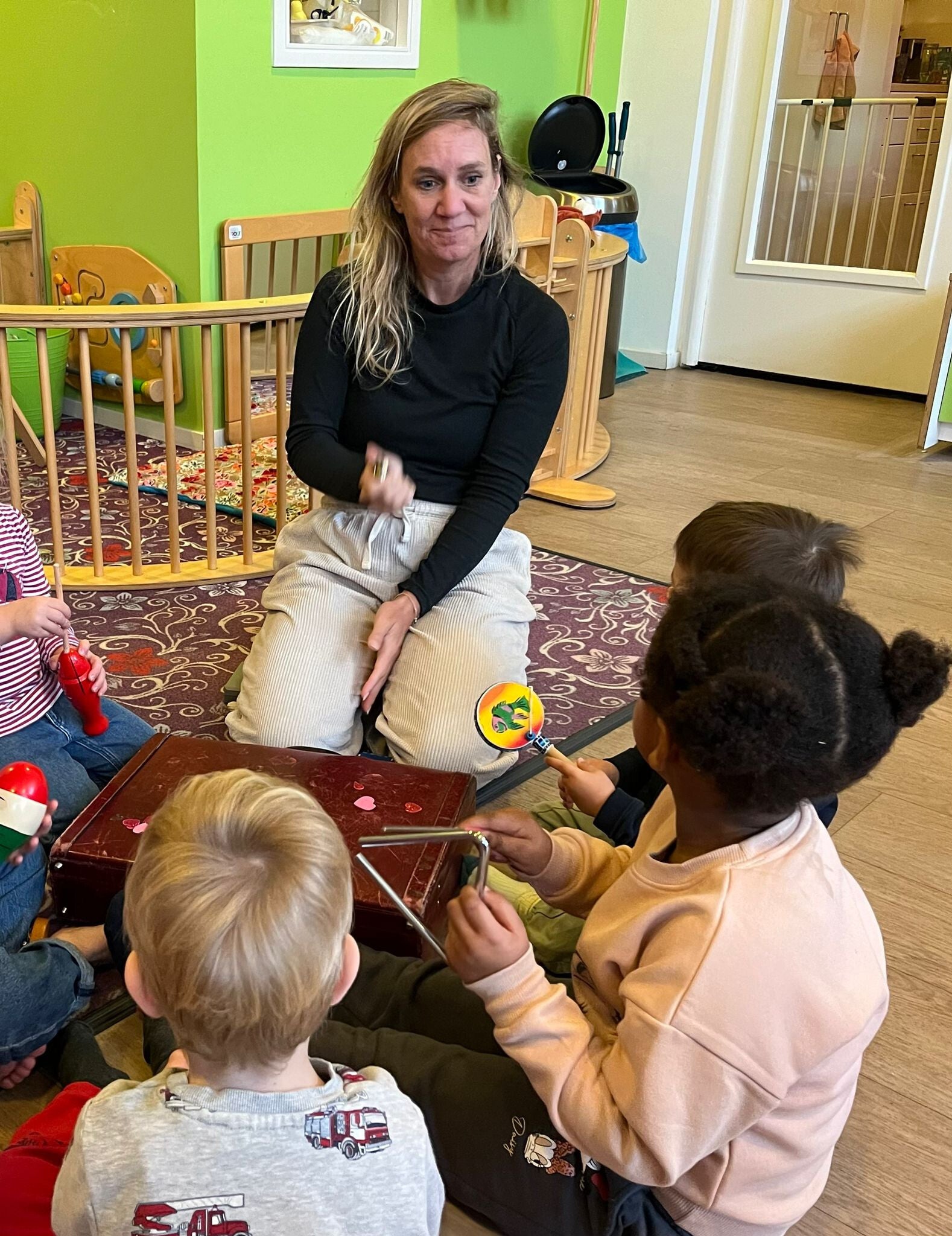Ik (Femke) kom langs met een koffer die gevuld is met verrassende materialen: Bijzondere muziekinstrumenten, voorleesboeken over emoties, een playlist vol met verschillende emotieliedjes waar we al onze bewegingen en gekke moves in kwijt kunnen, 'emotiebeestjes', Japie het Schapie; een knuffel die héél veel weet over emoties.